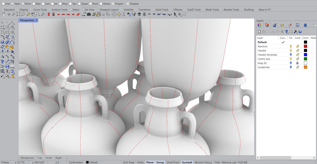 Data management is a key part of a project of this size and complexity. I also developed new methods of modelling basket-handle amphoras and recorded tutorials for future project collaborators. The main software I used for modelling and calculations is Rhino 7.